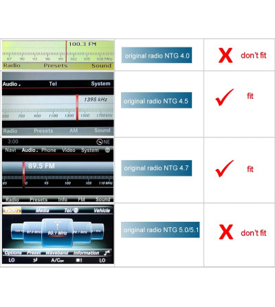 Nota: Não é compatível com rádios originais para NTG 4.0 (2008-2010) nem para rádios originais para NTG5.0/5.1/5.2 (2016-2019)
