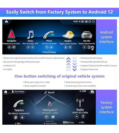 【Feito especificamente para sistema Mercedes Benz NTG6.0】 Antes de comprar, certifique-se de que a tela original de fábrica do seu carro seja de 10,25 / 12,3 polegadas!!! Adequado para Mercedes Benz Para Mercedes Benz A B C E CLA CLS GLA GLK V EQC 2020-2023 Ano com tela de fábrica. A caixa carplay foi projetada para ser de fácil instalação e perfeitamente integrada ao seu carro.